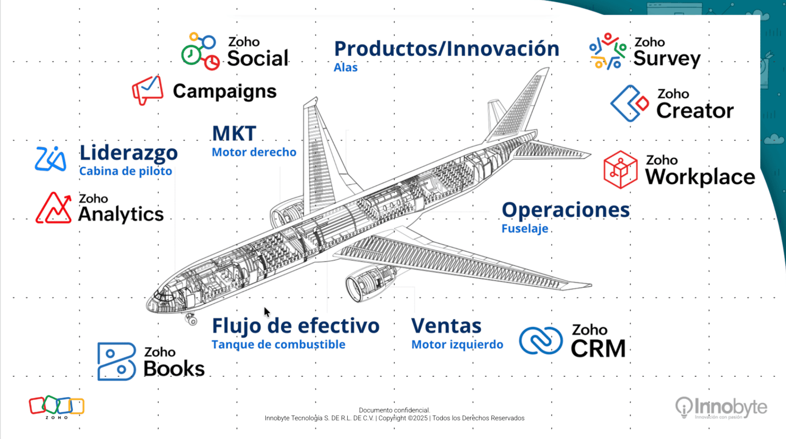 Realizar una presentación sobre Zoho y sus herramientas a la audiencia participante del evento. | Asistentes a conferencia de Innobyte. |